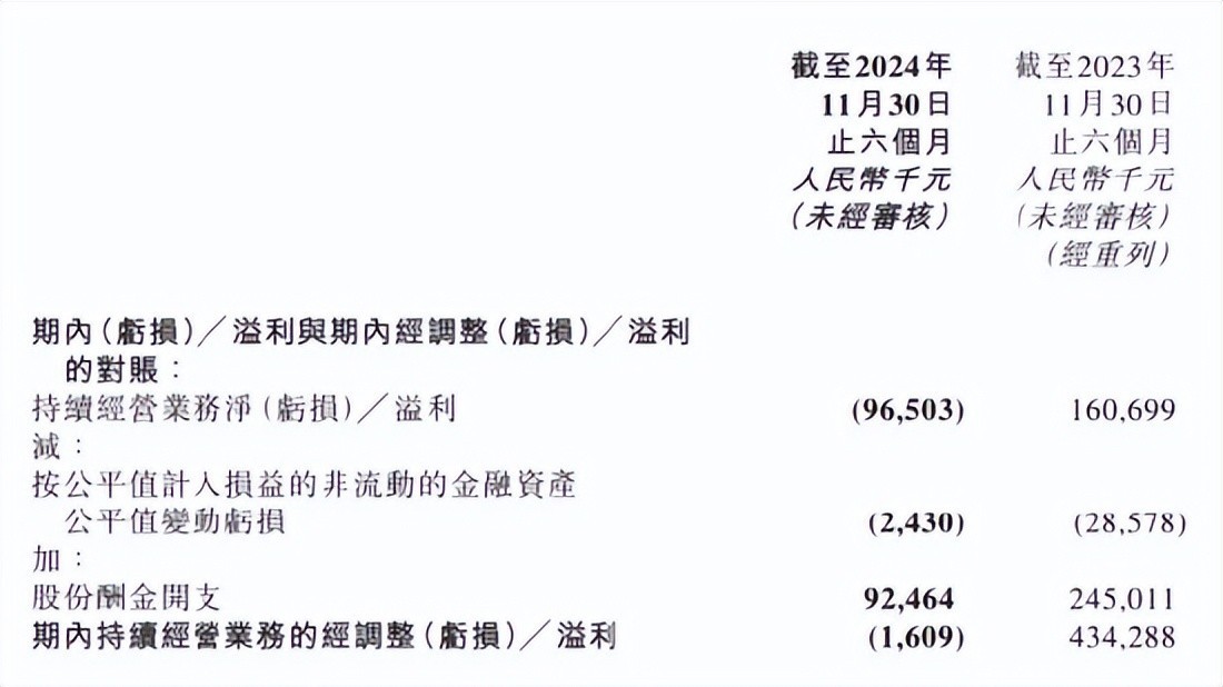 截至2024年11月30日止六个月,东方甄选持续经营业务的净亏损为9650万元,而去年同期为净盈利1.61亿元,由盈转亏。若剔除出售与辉同行的财务影响,报告期间持续经营业务净盈利为3270万元。